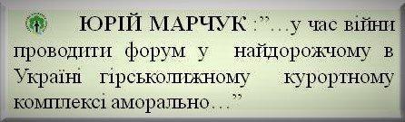 – По-друге і ГОЛОВНЕ: я розумію, що питання, які заявлені на обговорення, є важливими, але у час війни, коли наші воїни на передовій тримають наше небо, захищають нашу землю від рашистів, віддають своє життя за Україну, за нашу свободу, всі наші зусилля, наші кошти мають бути направлені на підтримку армії, на допомогу тим, хто постраждав від загарбників. І лісівники це гідно роблять: з перших днів війни підтримують ЗСУ, надають притулки переселенцям, відправляють гуманітарну допомогу мешканцям деокупованих територій. Я вважаю, що у час, коли мільйони людей потребують підтримки і допомоги, коли наша країна переживає дуже складні часи, проводити форум у найдорожчому в Україні гірськолижному курортному комплексі аморально, а тим, хто його організовує, має бути соромно за цю організацію.