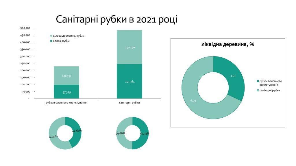Аналізуючи ці дані, ми приходимо до висновку, що майже дві третини ліквідної деревини рубають в Закарпатті санітарними рубками. Ними у 2020 році заготовлено більше 64 відсотків деревини, у 2021 році – майже 68%.