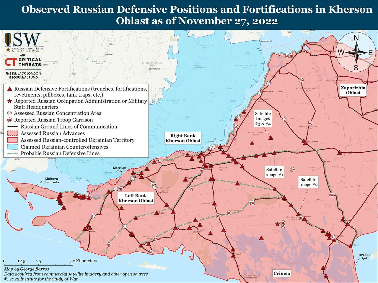 ISW публикует сокращенное обновление кампании сегодня, 27 ноября. В настоящем докладе дается оценка оборонительных позиций, которые российские войска создают в восточной части Херсонской области, и что эти позиции говорят об ожиданиях России в отношении будущих операций в этом районе.
