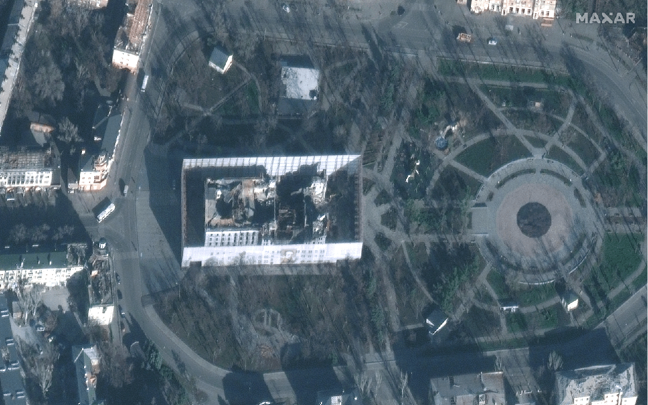 Российское прикрытие разрушенного Мариупольского драматического театра наблюдалось 30 ноября. – Спутниковый снимок ©2022 Maxar Technologies