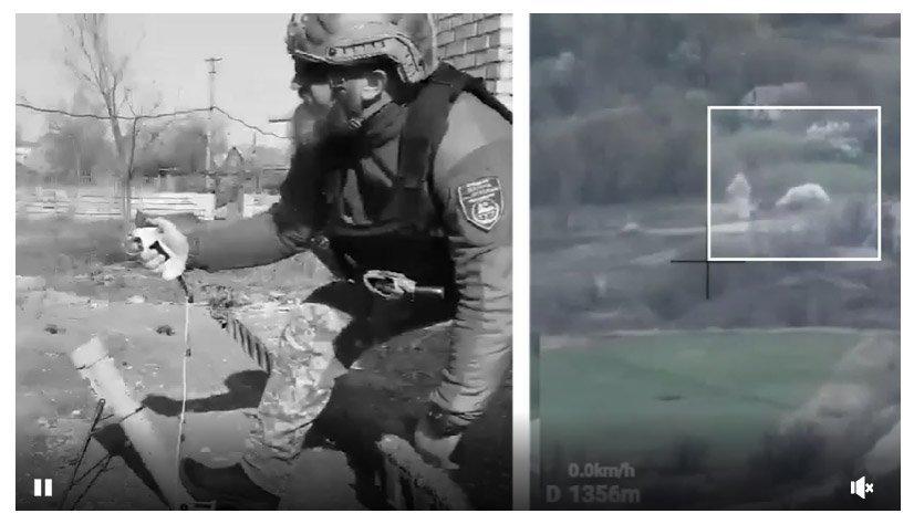 Слева: военнослужащий украинских вооруженных сил запускает американский боеприпас Switchblade 300. Справа: Switchblade поражает российскую цель. (Видео: Telegram и командование Сил специальных операций Вооруженных сил Украины / Facebook)