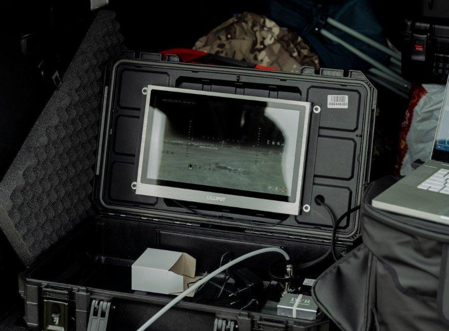 Управляя небронированным автомобилем, команда Ochi выбирает место рядом с линией фронта, подключает резервные батареи дронов к генератору и запускает подключение к Интернету Starlink, поэтому все, что они видят, может быть передано в близлежащие бригады.