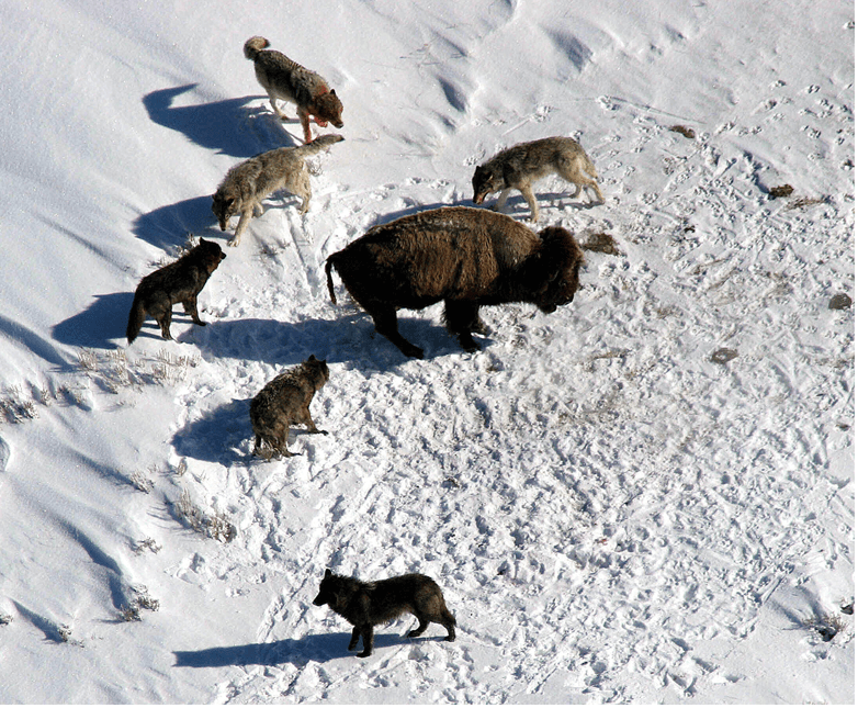Однако ситуация на равнинных пастбищах Северной Америки, где волки охотятся на лосей, может быть совсем иной. Лосиный навоз способствует оздоровлению пастбищ, и то же исследование 2016 года предполагает, что хищничество волков может привести к потере запасов углерода до 30 миллионов метрических тонн в год. Однако в целом исследование показывает, что чистый эффект волков заключается в увеличении связывания углерода.