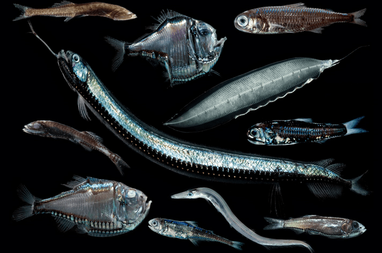 Так называемая сумеречная зона океанов, расположенная на глубине от 200 до 1000 метров (650-3300 футов) ниже поверхности, составляет около 20% всех морей по объему. Именно здесь обитают мезопелагические рыбы, крупнейшая группа позвоночных на планете. Они составляют до 95% всей рыбы в океане, и, по оценкам, их общий вес составляет 10 миллиардов метрических тонн, что побудило содиректора GWA Магнуса Сильвена описать их влияние на углеродный цикл как малоизвестное планетарное чудо.