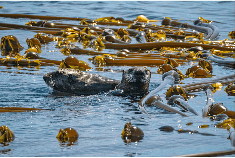 Морская выдра — еще один высший хищник, оказавший большое влияние на растительный мир. Она помогает контролировать морских ежей, которые, если их не остановить, могут поглотить целые леса водорослей, являющихся одим из самых эффективных поглотителей углерода на планете. Исследование , проведенное в 2012 году в Северной Америке, показало, что леса из водорослей, в которых обитают каланы, могут поглощать в 12 раз больше CO 2 , чем леса без них.