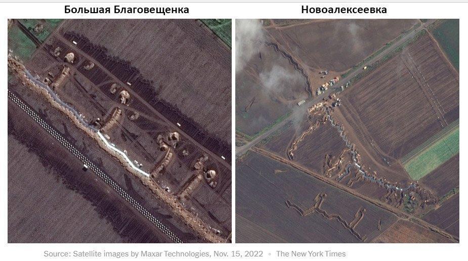 Анализ, опубликованный в конце ноября американской исследовательской группой Института изучения войны, показал, что Россия также построила оборонительные позиции в глубине южной части Херсона в октябре, прежде чем отдать приказ о выводе войск с территории к северу от Днепра.