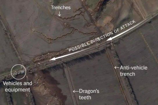 Россия также строит километры траншей и дотов — небольших сооружений, из которых их войска могут стрелять.