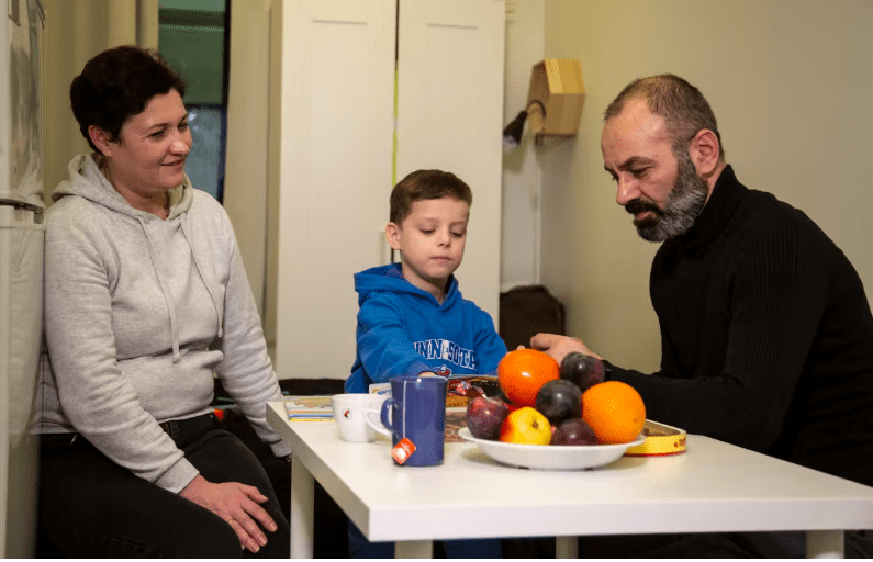 Никита живет вместе со своими бабушкой и дедушкой Татьяной Блощенко и Резо Блохиным в общежитии для украинских беженцев в Хельсинки. Фото: Томас Хагстрём / Yle