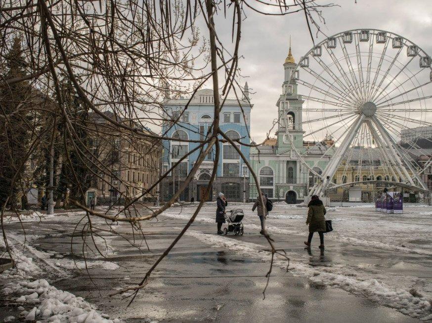 Центральный Киев в этом месяце. Украина празднует Рождество 25 декабря, чтобы отметить религиозный праздник по западному календарю, и 7 января, чтобы отметить восточно-православный религиозный праздник. Фото…Лаура Бушнак для The New York Times