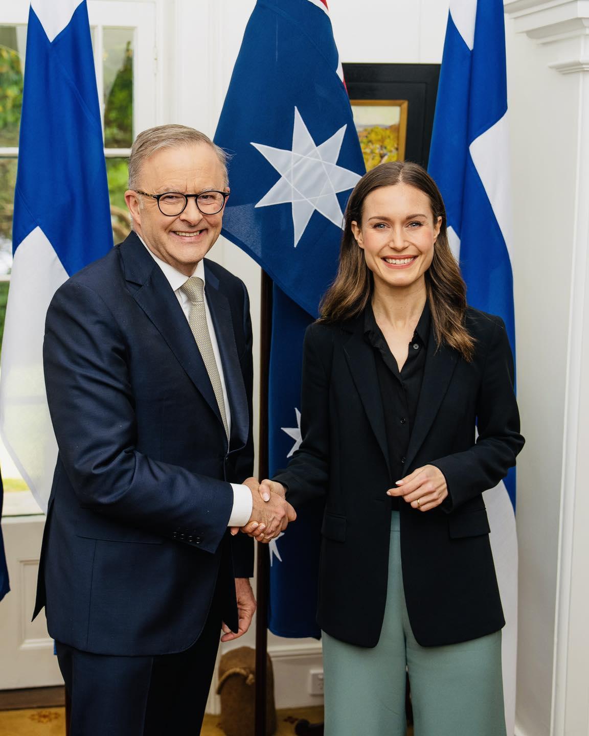 Премьер-министр Финляндии Санна Марин с премьер-министром Австралии Энтони Албанезе. Фото через Facebook.