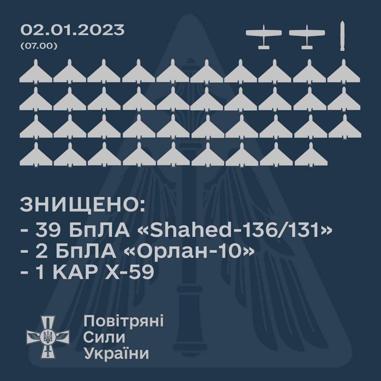 Украинские военные заявили, что сбили все 45 взрывающихся беспилотников, выпущенных в минувшие выходные. Этот залп также включал крылатые ракеты, некоторые из которых поражали цели.