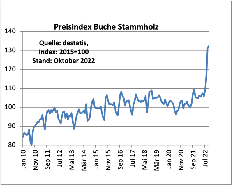 © Олаф Зинке Цены на буковые бревна также резко выросли. Даже D-древесина часто продается за 80 евро/м3, C-качество 5-го класса диаметра достигает отметки в 100 евро, рост продолжается. Цена буковых дров, например, выше, чем на промышленную буковую древесину.