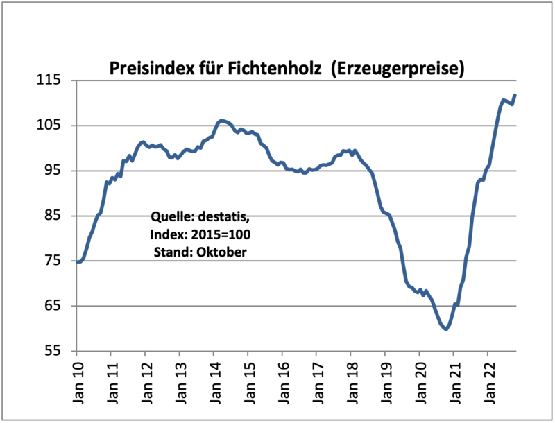 И, несмотря на хорошие ценовые предложения, в начале года дела идут не особенно хорошо. Как строительный кризис, так и экономические перспективы оставляют мало места для стабильных или даже более высоких цен на древесину в долгосрочной перспективе. Тем не менее, рынок поддерживается сохраняющимся высоким спросом на энергетическую древесину и дрова. Это, вероятно, поддержит цены на древесину лиственных пород, в частности, или даже приведет к их дальнейшему росту. В то же время древесина хвойных пород, используемая в строительном секторе, вероятно, пострадает от экономического развития с точки зрения цены.