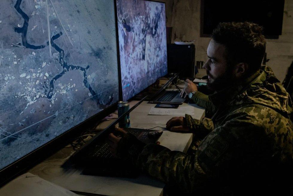 Украинец просматривает кадры российских окопов в этом месяце. Традиционная динамика 20-го века доминировала в войне, несмотря на некоторые современные факторы, такие как беспилотники и кибератаки. Фото…Николь Тунг для The New York Times