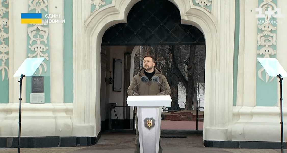 «Героям слава!» — ми говоримо ці слова щоразу, відповідаючи на наше національне гасло. Лунає «Слава Україні!» і чуємо згадку про те, завдяки кому наша держава живе. Так звучать тисячоліття нашої історії і роки нашої війни за незалежність, так шануємо покоління тих, хто міцно боровся, щоб у вільній Україні майорів синьо-жовтий прапор, прапор нашого народу! І так шануємо покоління, яке зараз бореться за Україну, — з такими словами до захисників та захисниць України звернувся сьогодні, в річницю широкомасштабного вторгнення російських окупантів на територію України, під час церемонії підняття Державного Прапора на Софіївській площі Президент України Володимир Зеленський: