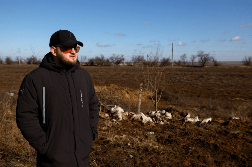 По его словам, хотя Украина отвоевала этот район в ноябре, российские войска регулярно обстреливают его ферму из-за Днепра, проделывая новые дыры на его полях и разбрасывая неразорвавшиеся боеприпасы.