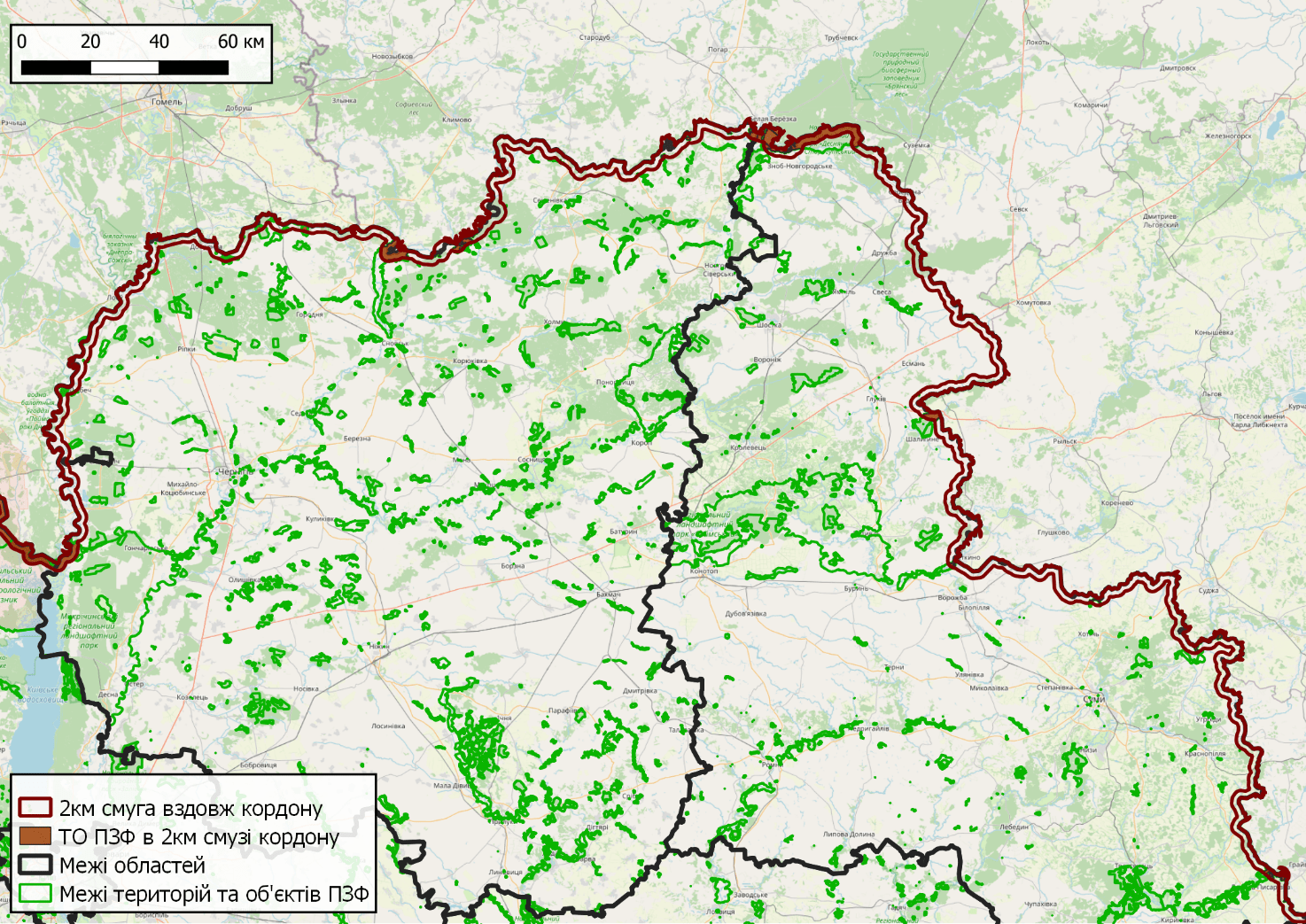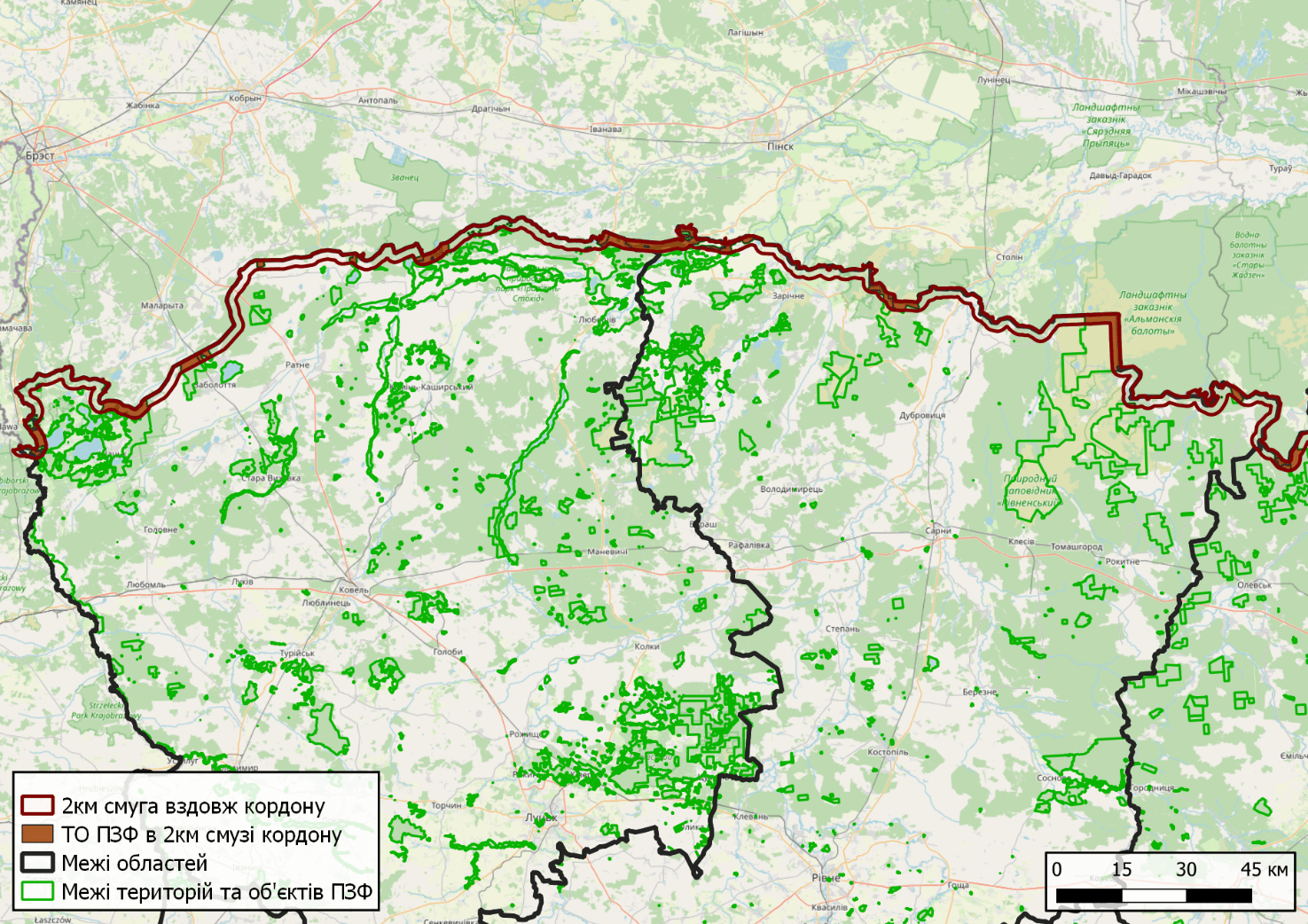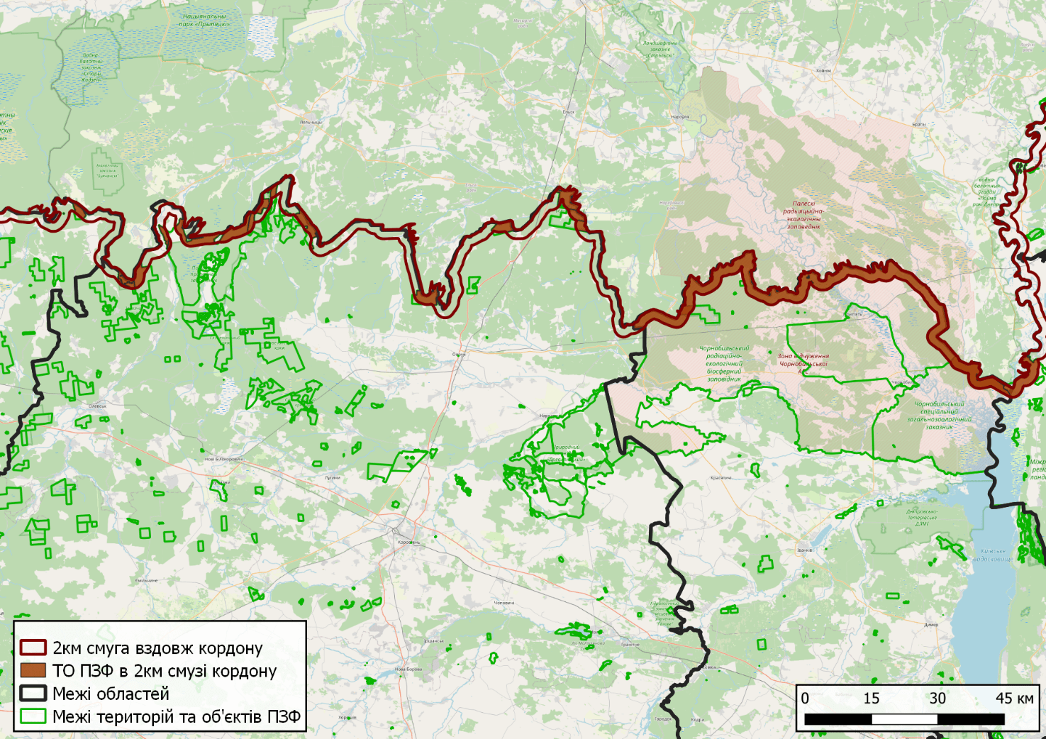 Таким чином під загрозою знищення опиняються значні території таких відомих національних природних парків як Шацький, «Прип’ять-Стохід», Нобельський, «Деснянсько-Старогутський», «Дворічанський», «Гетьманський» та інших, Карпатського та Чорнобильського радіаційно-екологічного біосферних заповідників, Рівненського та Поліського природних заповідників (загалом, до 3% природно-заповідного фонду України). Тільки на кордоні з білоруссю йдеться про приблизно 65 тисяч гектарів територій та об’єктів ПЗФ.