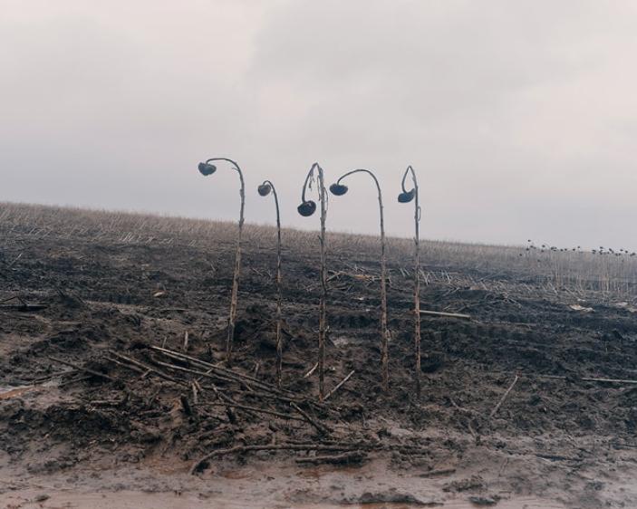 Есть батальон, сражающийся вместе с украинскими силами под названием Шейх Мансур, который состоит из добровольцев из Чечни. Эти бойцы взяли меня с собой в город. Он находится под постоянным обстрелом и теперь почти полностью разрушен, город-призрак, за исключением нескольких тысяч мирных жителей. Есть бесконечный, глубокий звук, и вы можете почувствовать, как воздух вибрирует: это как быть внутри барабана. Небо загружено металлом, и есть ощущение, что что-то может упасть и ударить вас в любой момент.