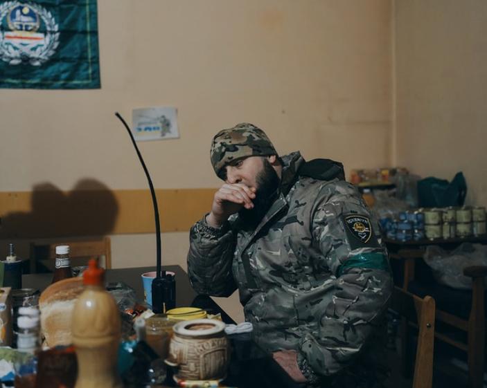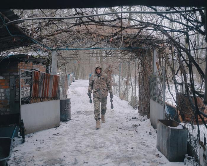 Войска меняются каждые два дня или около того, перемещаясь между базами на разном расстоянии от фронта. Вдали от нулевой линии (точки соприкосновения с россиянами) есть шанс немного расслабиться. Хотя удобств почти нет. Недавно я отдыхал с группой в заброшенном доме, в нескольких километрах от фронта. Район был разрушен бомбами, и единственным источником тепла было пламя газовой плиты. Простые вещи становятся роскошью: чашка чая, общая сигарета.