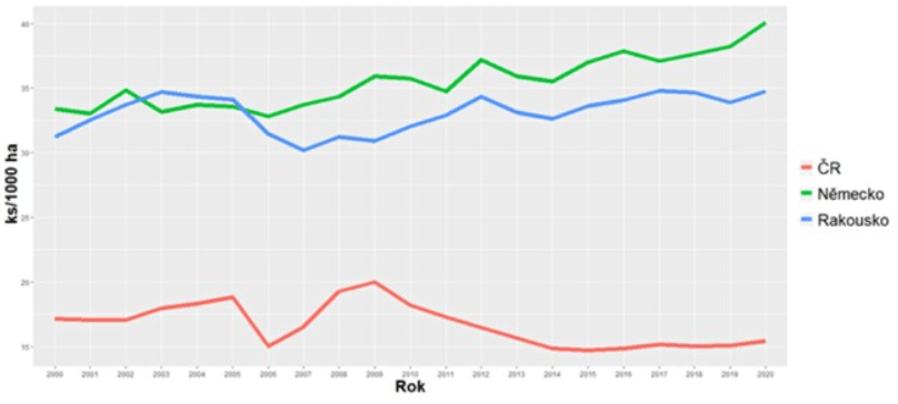 Сравнение показывает, что если в Чехии уровень добычи косуль мало меняется и находится на относительно низком уровне с тенденцией к снижению, то в соседних странах наблюдается устойчивая тенденция к росту добычи при значительно более высоком её уровне. Это означает, что охота не оказывает большого влияние на популяцию и не снижает её репродуктивной способности.