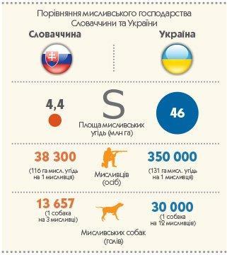 Словаччина дуже схожа на Україну і за географією, і за видовим складом диких тварин, і дещо за ментальністю населення. Саме тому, модель ведення мисливського господарства у цій країні могла б стати взірцем та основою для вдосконалення мисливської галузі України, адже однією із основних умов проведення ефективних реформаційних перетворень є аналіз та вивчення досвіду найбільш розвинутих зарубіжних країн щодо ведення та управління мисливським господарством.