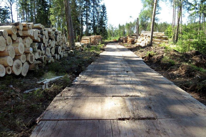 Государственным акционерным обществом "Государственные леса Латвии" (Latvijas valsts mezi, LVM) разрабатывается и испытывается интересная переносная деревянная дорога, рассчитанная не менее чем не десять циклов использования, для вывозки древесины с лесосек по переувлажненной почве.