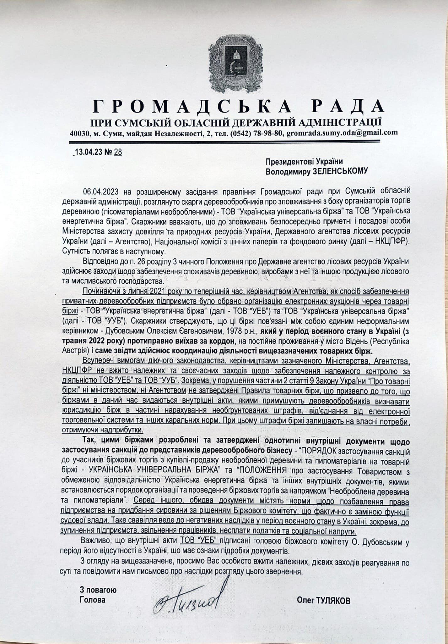 Документ поступил на почту нашего сайта. Он отправлен не только в адрес Президента, но и Премьер министру, а также в офис Генеральной прокуратуры, ДБР, НАБУ и Бюро экономической безопасности Украины. Пока не знаю насколько важны темы, поднимаемые сумской общественностью и надеюсь узнать это из Ваших комментариев. Размещаю для ознакомления. М.П.