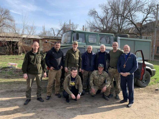 Підприємець Роман Рупа перефарбував авто та привів до ладу, Степан Євчин передав на передову колеса. Перед важкою дорогою на Бахмутський напрям, транспортний засіб освятив о. Василь Партика та разом з директором ДЛГП «Галсільліс» Миколою Дем’яновичем вирушили у нелегку дорогу. У Львові до них приєдналися лісівники з інших районів Львівщини та волонтер з Німеччини Єнс Лейсінберг, який передав гуманітарний вантаж на передову. Наступного дня були вже на місці, де вручили ключі від пікапа військовослужбовцям з Червоноградського району, а продукти розвезли по підрозділах, де служать наші земляки. Хлопці були раді зустрічі, дякували, що лісівники їх не забувають, просили передати велике спасибі господиням за домашні смаколики. Користуючись нагодую, отець Василя поспілкувався з військовими, аби підтримати їх духовно.