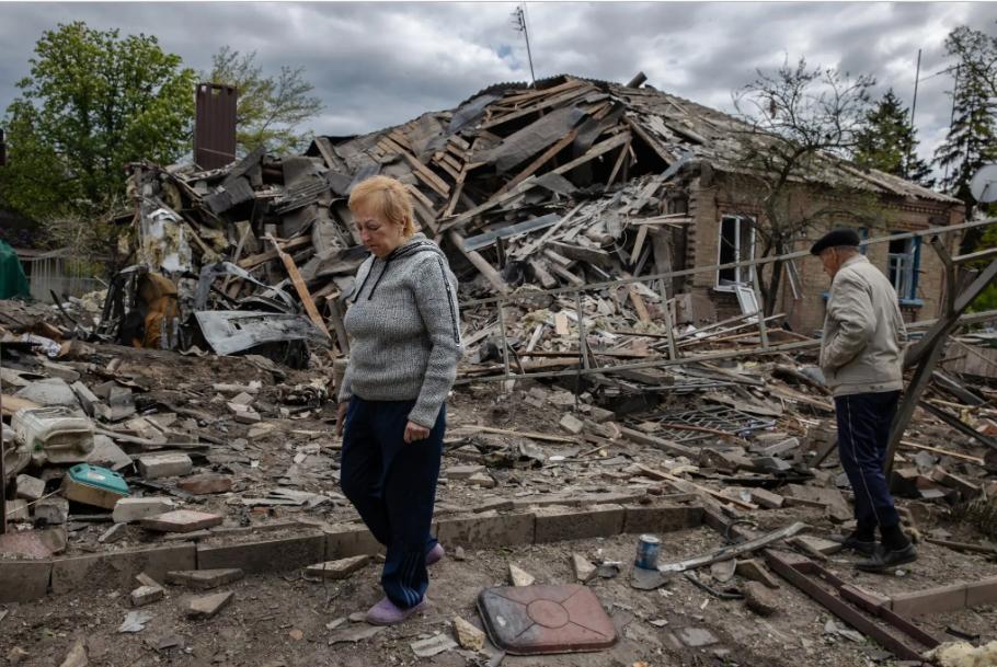 Женщина перед своим домом, который был разрушен российской ракетой в Славянске, Украина, в четверг. Фото… Тайлер Хикс / Нью-Йорк Таймс