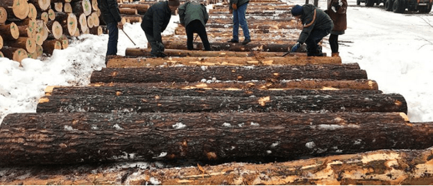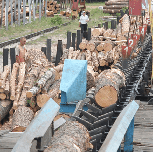 Візуальне сортування соснових колод на нижньому складі та на лісосіці