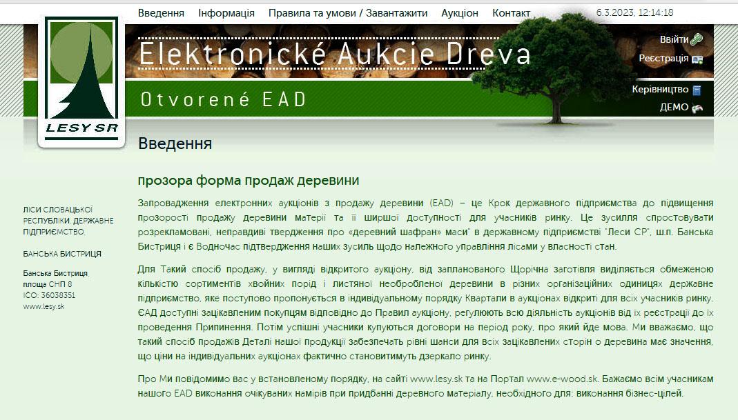 Найбільш прозора форма продажу, завдяки якій усі групи покупців зможуть купувати деревину відповідно до умов EAD. Вони реалізовуватимуться у розмірі 10-30% від запланованих річних ресурсів (з урахуванням максимальної економічної прибутковості окремих сортиментів деревини) з регулярною періодичністю. За допомогою цієї форми продажу можна буде продавати деревину від інших компаній, крім LESY SR š.p. за заздалегідь встановленими правилами.