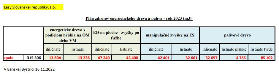 Скріншот Плану енергетичної деревини та паливних ресурсів – 2023 рік (м3)