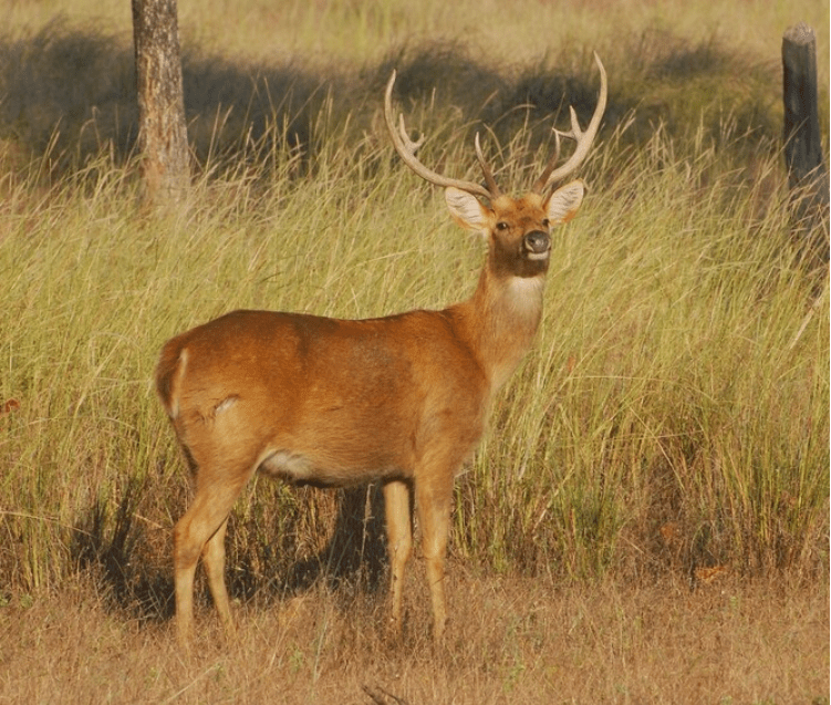 Редкий олень барасинга, населяющий луга и затопленные саванны северной Индии и Непала. Он акклиматизировался в Европе и хорошо переносит наши зимы. К сожалению, особого интереса к его разведению в зоопарках нет, особенно не хватает самцов. Таким образом, стадо, служащее для «поддержания ландшафта», могло бы сильно помочь популяции в целом. Фото | Ян Плугачек