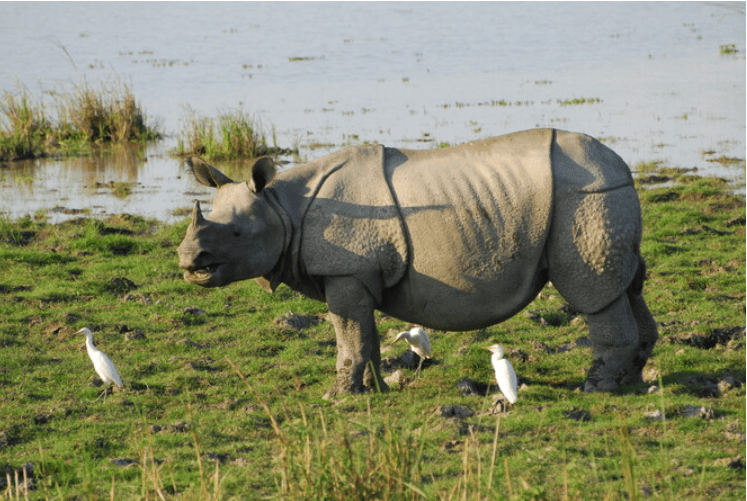 Однако следует помнить, что в недавние времена (15 тысяч лет) в Европе обитал его родственник — шерстистый носорог. Изображение из национального парка Казиранга, Ассам, Восточная Индия.