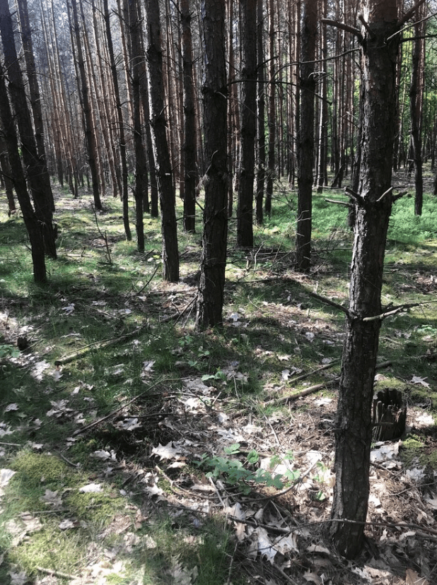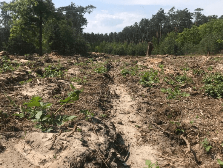 В значительной части лесов Чехии, особенно в монокультурах сосны на песчаных почвах (фото из Полаби) ведется сплошнолесосечное хозяйство. В этом есть определенная лесная логика, потому что «сорняки», типа требовательных к богатству почв трав и кустарников, не конкурируют с всходами сосны на в песке. Как следствие в течении нескольких лет в атмосферу «улетает» много СО2.