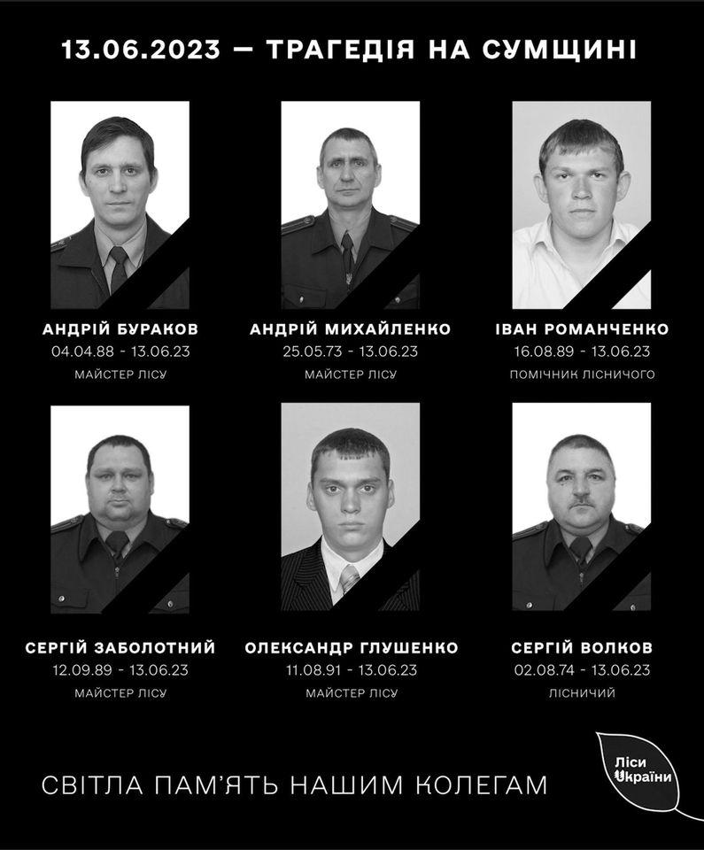 13 червня 2023 року 6 працівників філії «Свеське лісове господарство» ДП «Ліси України» загинули на лісовій дорозі між с. Стара Гута та с. Голубівка.