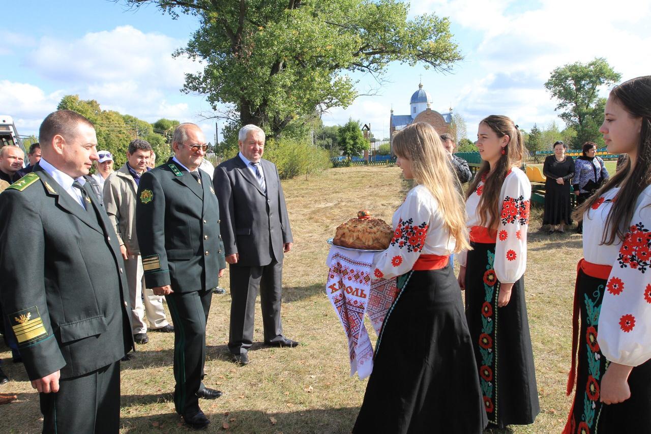 Вихованці місцевого учнівського лісництва привітали делегацію білоруських спортсменів-лісівників хлібом-сіллю на вишитому рушнику.