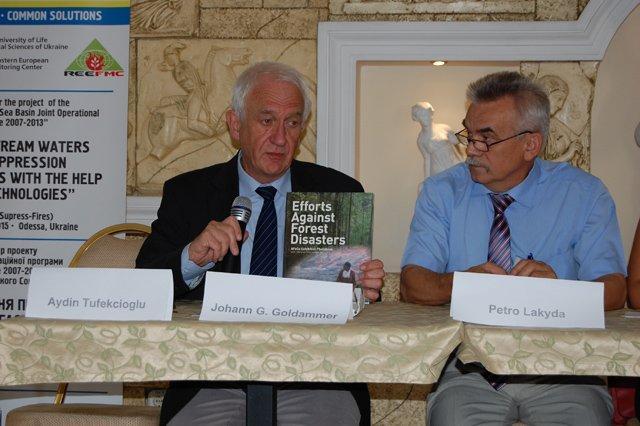 Україну на ній, окрім нашого університету, презентували представники відомств та установ, що відповідають за боротьбу із природними пожежами, зокрема Державного агентства лісових ресурсів, Державної служби надзвичайних ситуацій, Одеської обласної державної адміністрації, Одеського обласного управління лісового та мисливського господарства. Вони обговорили сучасний стан та результати лісопірологічних досліджень в Україні, Східноєвропейському та Чорноморському регіонах, актуальні проблеми охорони лісів від пожеж і шляхи її поліпшення, застосування новітніх та інноваційних технологій для удосконалення ефективності охорони лісів від пожеж.