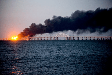 Затем последовал взрыв заминированного грузовика на мосту через Керченский пролив 8 октября. Украина угрожала атаковать 12-мильный мост, соединяющий Россию и Крымский полуостров, который Москва аннексировала в 2014 году, что было осуждено как незаконное большей частью мира. Хотя неясно, кто совершил нападение, Путин обвинил в этом украинские «спецслужбы». На встрече со своим Советом безопасности Путин заявил: «Если будут продолжаться попытки совершения террористических актов на нашей территории, ответы России будут жесткими и по своим масштабам будут соответствовать уровню угроз, создаваемых для Российской Федерации». И действительно, Россия ответила многочисленными ударами по целям в украинских городах.