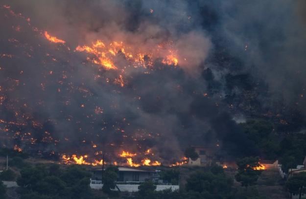 Осередків пожежі три: найперший – у районі міста Куварас в Аттиці, а також у районі міста Лутракі на березі Коринфської затоки та біля міста Дервенохорія, на північ від Афін. Останній зараз найбільш небезпечний.