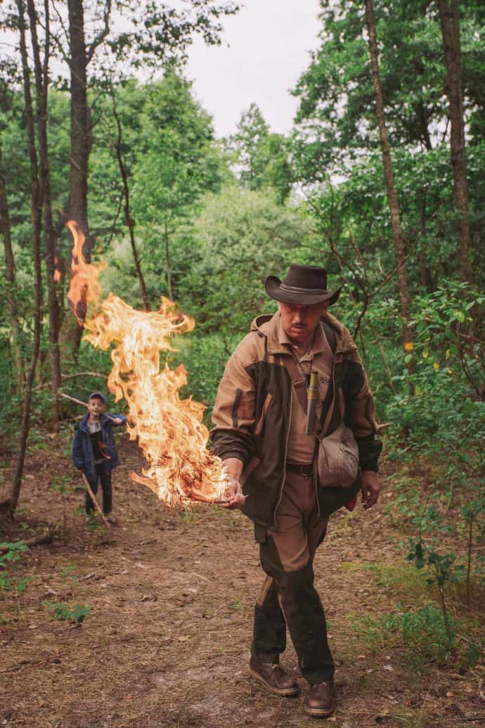 Андрій Сагайдак демонструє, як добре навіть за вологої погоди горить суха соснова гілка з мертвою хвоєю. ФОТО НАДАНО АНДРІЄМ САГАЙДАКОМ