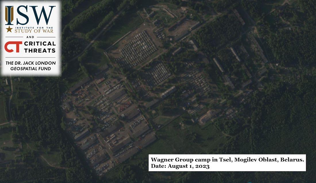 Группа Вагнер продолжает сохранять присутствие на объектах в Беларуси, и статус ее вывода в Россию, по слухам, остается неясным. Спутниковые снимки, собранные 9 августа, показывают значительное количество транспортных средств в лагере Вагнер в Цели, Осиповичи, Беларусь, и могут даже указывать на то, что в период с 1 по 9 августа на базу прибыло больше транспортных средств. [1] Украинские источники продолжают сообщать о расширении активности «Вагнер» в Брестской области, а 10 августа связанный с «Вагнеро» источник опубликовал кадры, на которых видно, что инструкторы «Вагнера» продолжают обучать белорусских военных. [2] Источник, связанный с Вагнером, усилил опровержение предполагаемого бойца Вагнера, в котором боец заявил, что предположения являются «фантазиями», хотя он признал, что многие бойцы Вагнер сами часто не узнают о своих развертываниях до последнего момента. [3] Однако ISW не обнаружил контриндикаторов, которые опровергли бы недавние предположения от 8 августа о том, что Вагнер перевез на автобусах от 500 до 600 человек из Беларуси в Краснодарский край, Воронежскую и Ростовскую области. [4] Российские источники предположили, что силы Вагнер планируют провести второй этап своего предполагаемого вывода из Беларуси 13 августа, но что небольшая группа инструкторов Вагнера останется в Беларуси для обучения белорусских сил. [5]