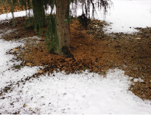 Почва под «зонтичной» кроной ели остается сухой во время небольших осадков.