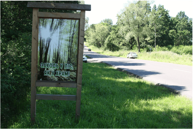 Перша зупинка на початку дня – на трасі за кілька кілометрів до Вигоди – колись “смт”, а за новим законом – села в Калуському районі Івано-Франківської області. Стрілка на зеленому фоні вказівника повідомляє, що ліворуч розташоване урочище “Полюк”. Як і всі ліси, що ми побачимо цього дня, воно належить філії “Вигодське лісове господарство” державного підприємства “Ліси України”.