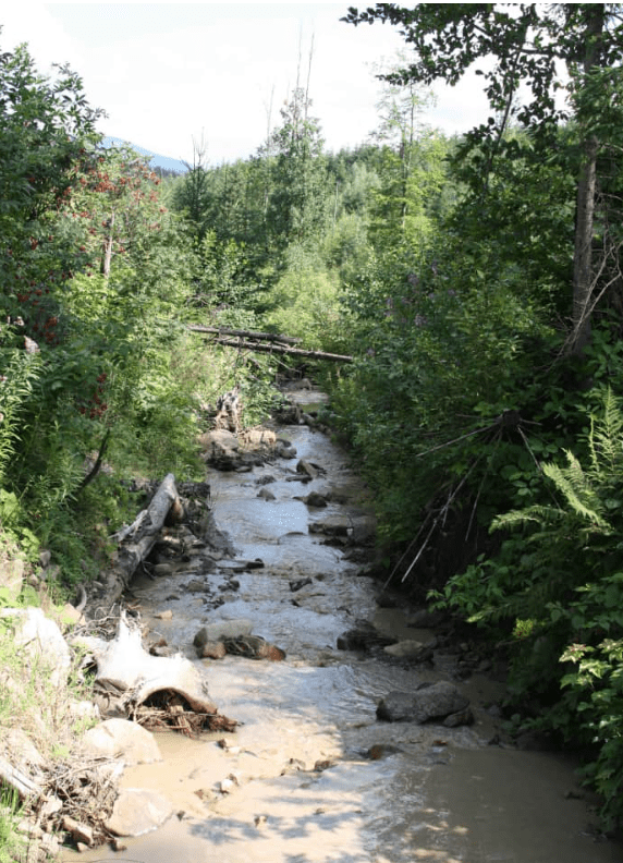 Зазвичай вода в Карпатських струмках абсолютно прозора. Але тут вона каламутна, бо, за словами Єгора Гриника, десь вище руслом струмка їздить техніка