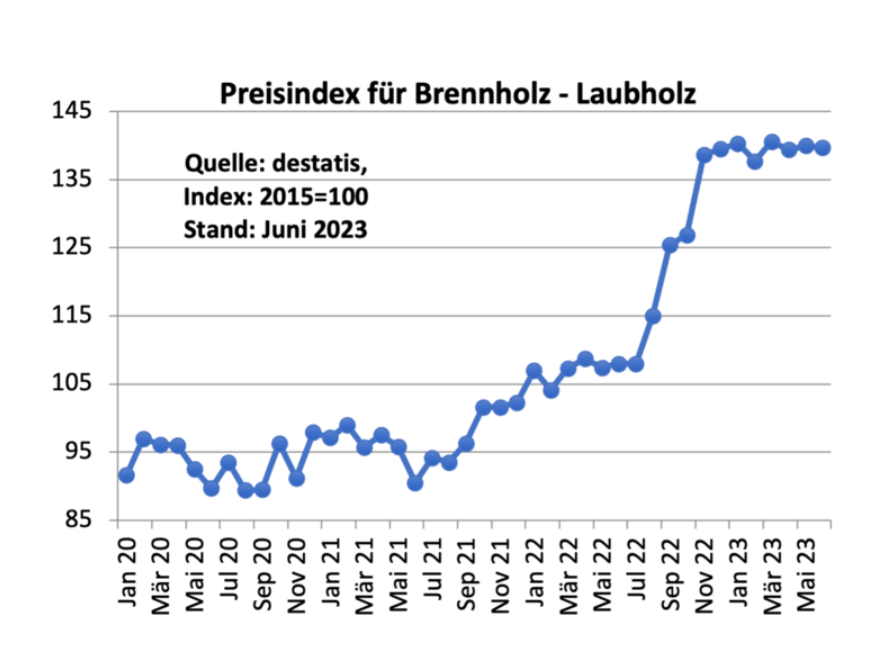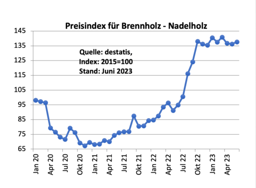 Дрова из твердых пород древесины в настоящее время стоят примерно на 30% дороже, чем год назад. Цены на хвойные дрова, которые на самом деле менее востребованы, даже на 45% выше, чем год назад. По крайней мере, именно об этом свидетельствуют цены на дрова, зарегистрированные Федеральным статистическим управлением в июне.