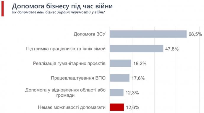87% підприємців продовжують допомагати ЗСУ та реалізовувати гуманітарні проєкти.