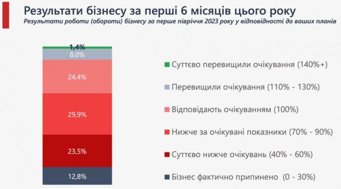 Не бачать перспектив 21,7% підприємств. Вони вказали, що бізнес не працюватиме або буде працювати на рівні до 50% від оборотів 2022 року.