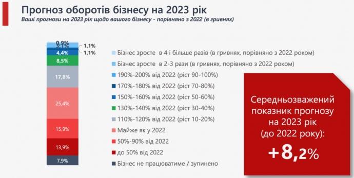 Понад третину бізнесу, 37%, очікує на зростання оборотів у 2023 році.
