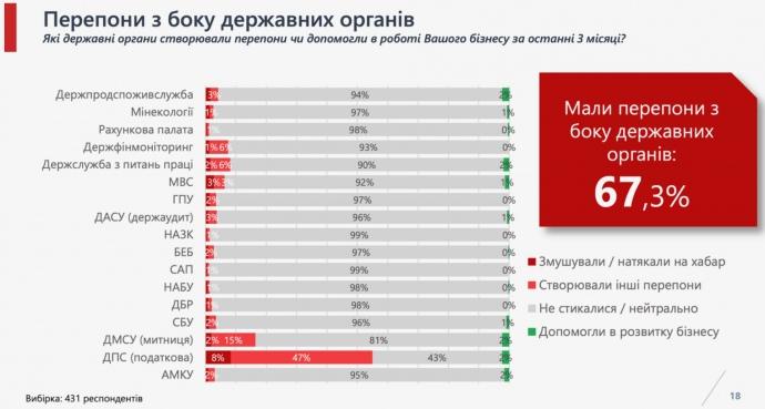 67,3% МСБ зіткнулися з перешкодами з боку державних органів.